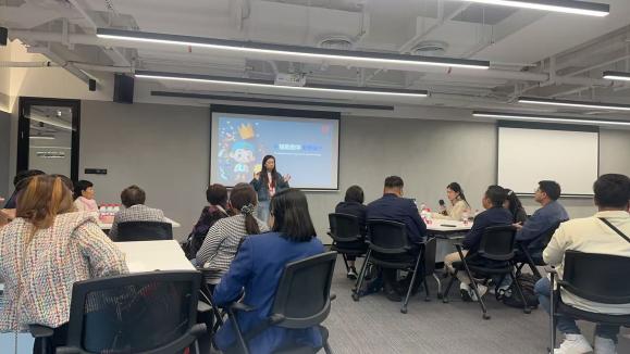 参观结束后,陈总监梳理活动核心流程,围绕 “AI 技术赋能教育” 开启分层交流。高嬿副校长随后介绍,群星职校动漫与游戏制作专业是上海市优质专业,依托上海市数智融媒创新开放实训中心,始终以 “职教出海” 为己任。此次活动是 “丝路数创” 项目的首次教研实践,未来将以三年规划为蓝图,推动动漫游戏、AI 应用等优质职教资源走进东盟,实现 “标准 — 课程 — 资源 — 平台 — 产业” 全链条国际化输出。