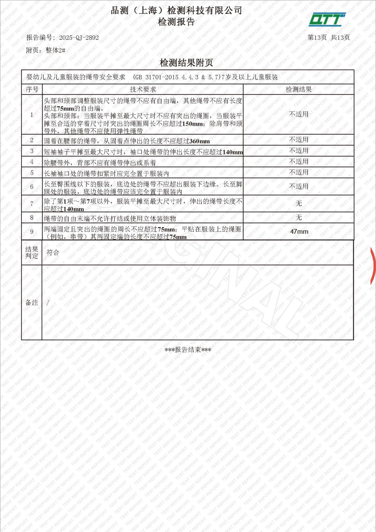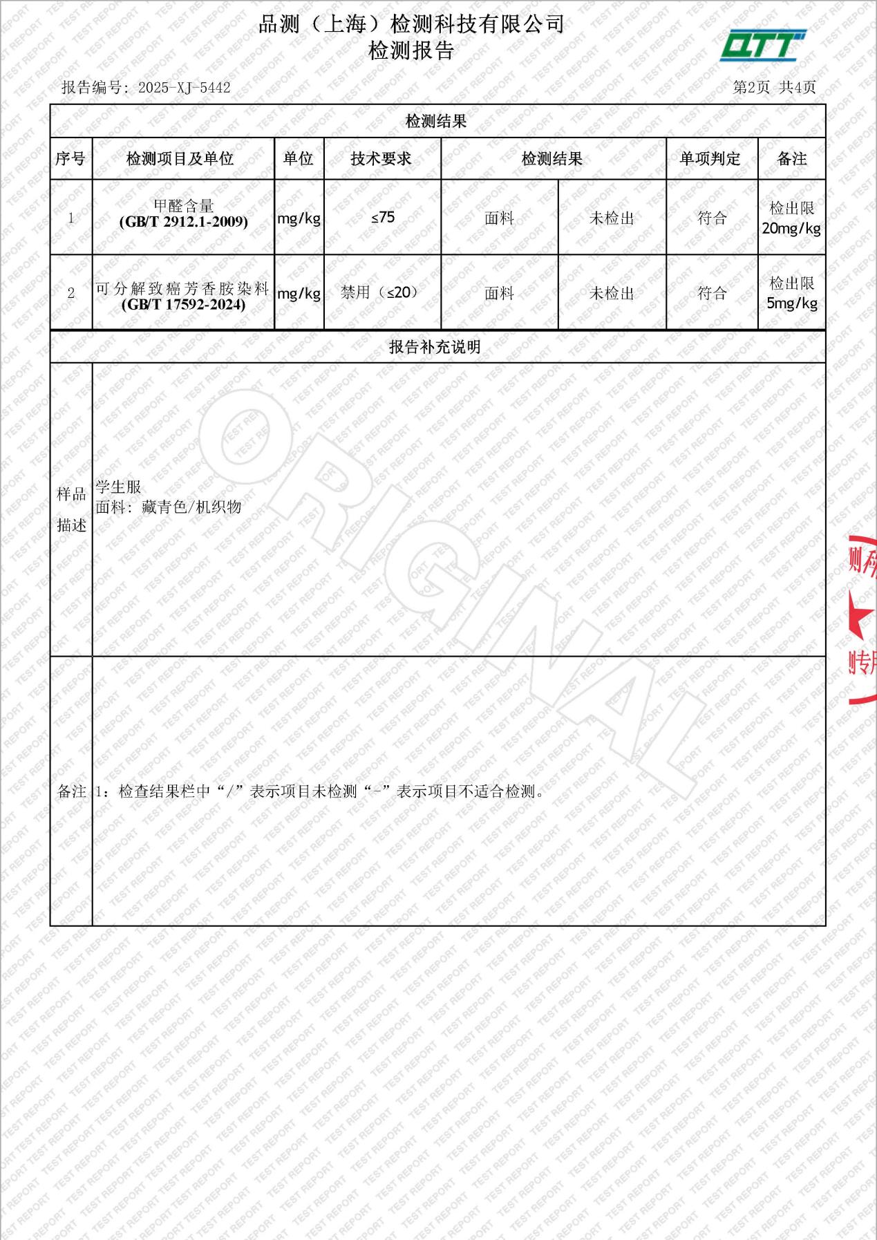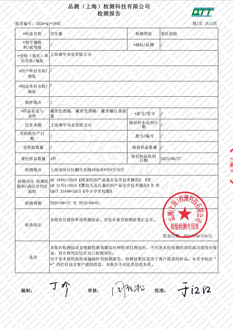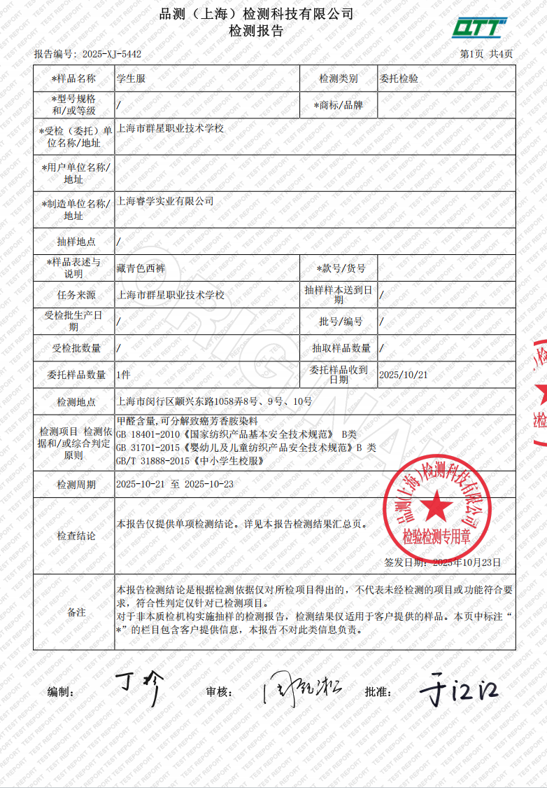 2025级新生校服双检报告(企业+学校)网上公示(西裤)