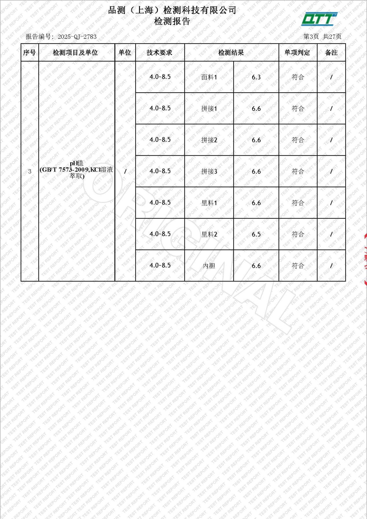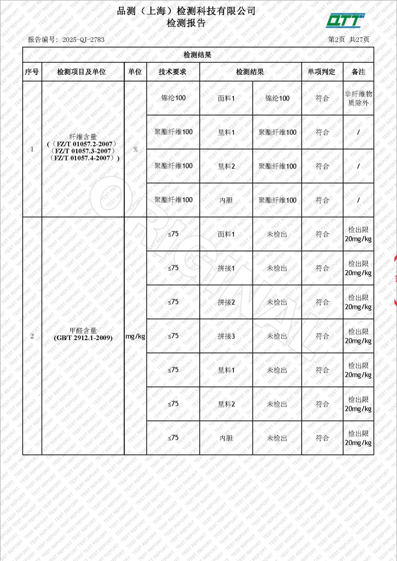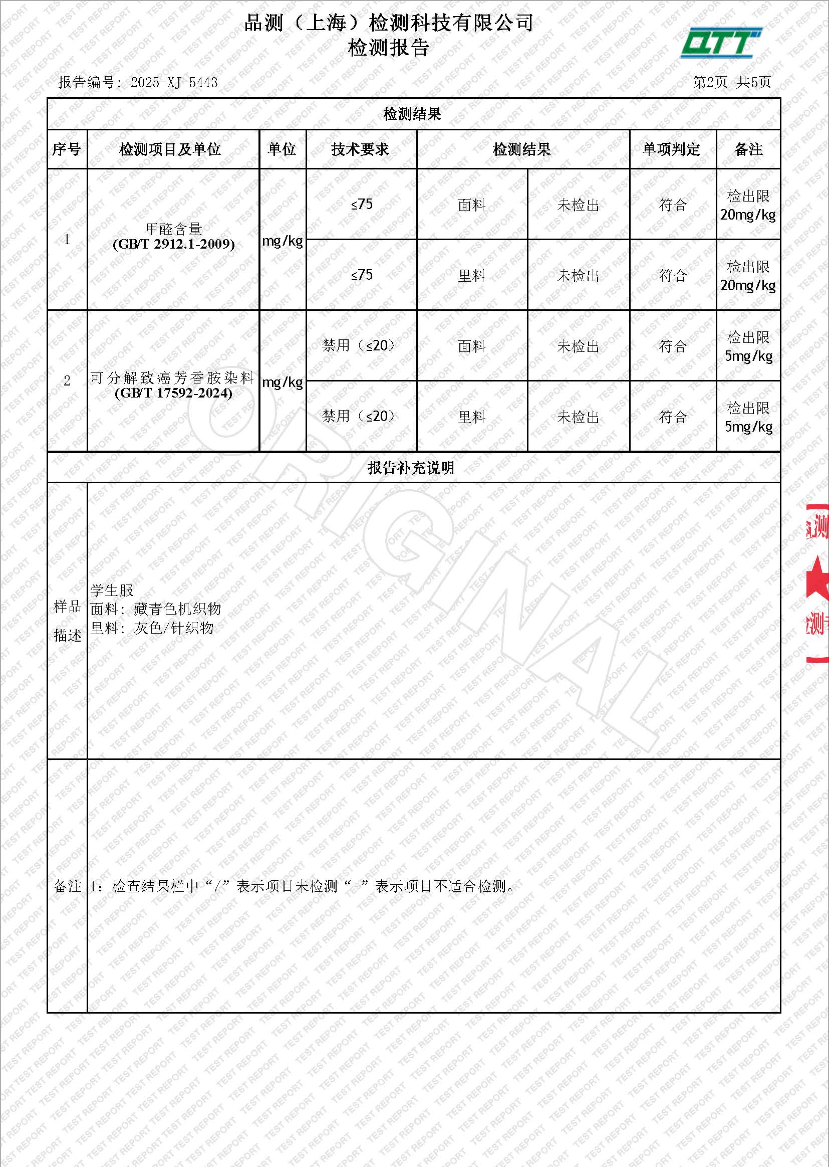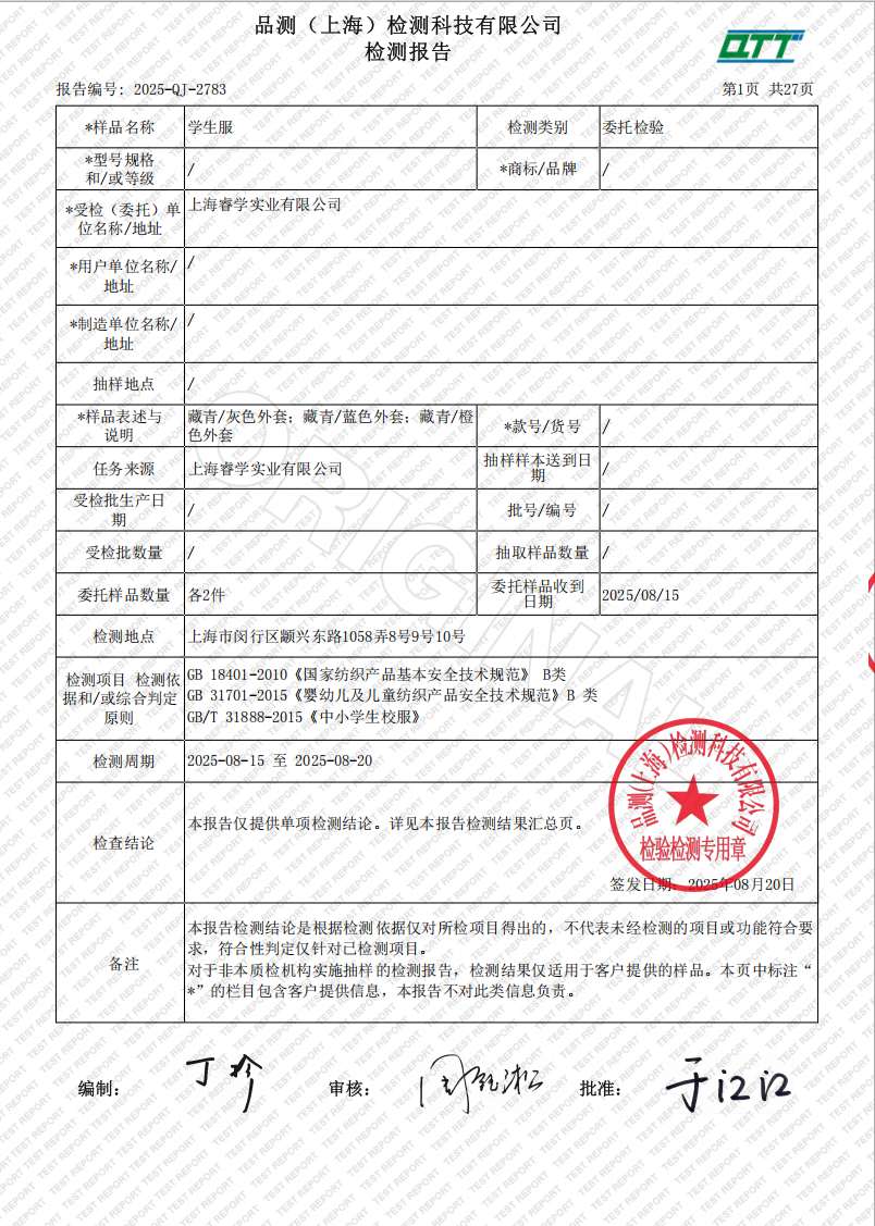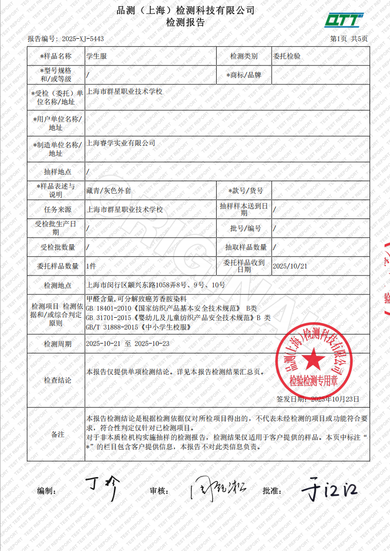 级新生校服检测报告